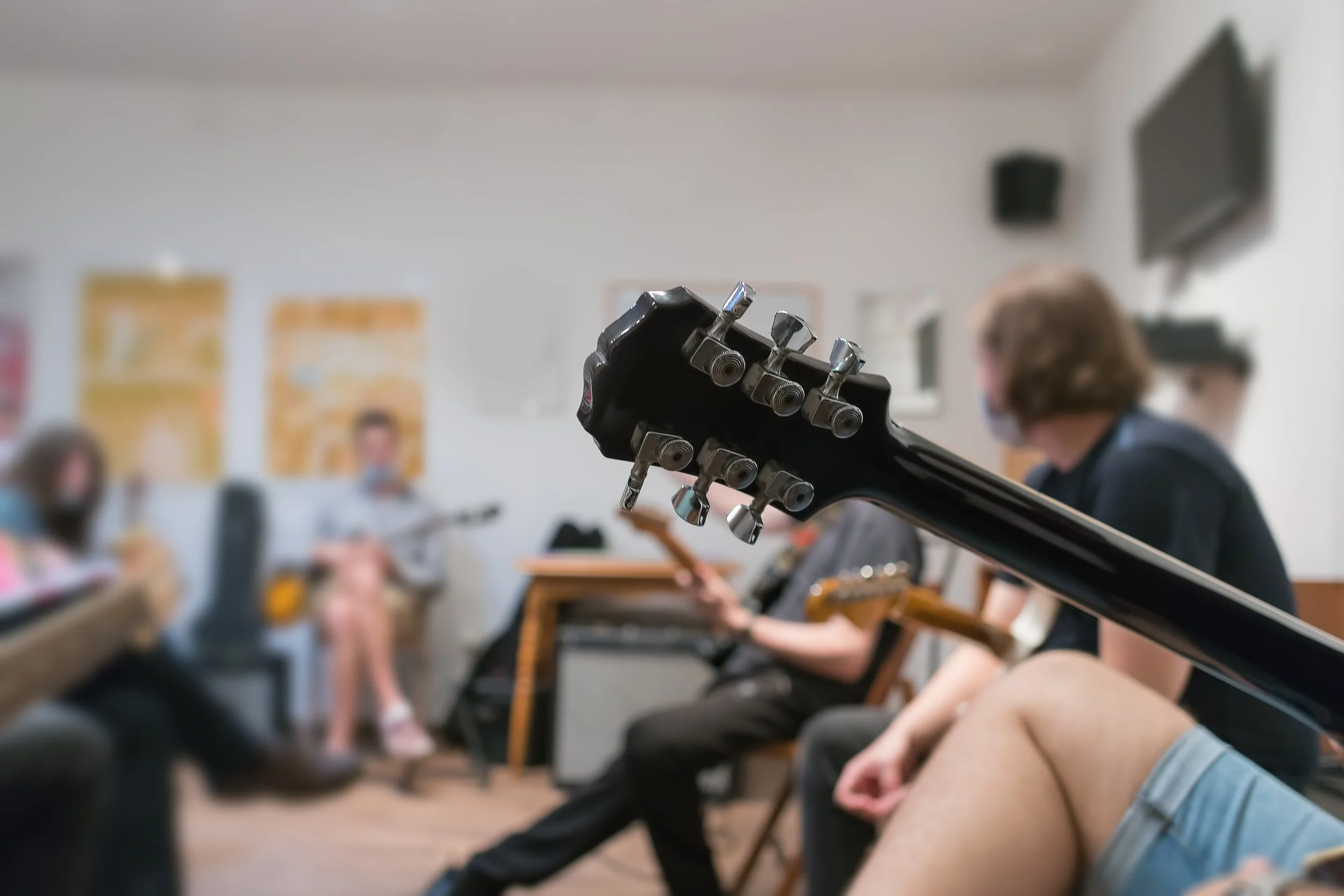 At Rhythm & Strings, we know learning an instrument is more fun — and more effective — when you’re not doing it alone. That’s why Guitar Lab: Group Sessions are designed to give you the best of both worlds: expert instruction plus the energy, accountability, and camaraderie of playing with peers.
